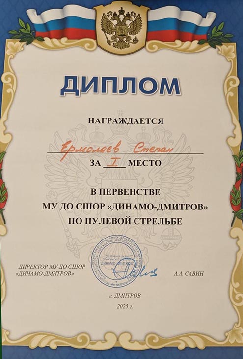 Молодой спортсмен Ермолаев Степан, студент Первого Академического Профессионального Колледжа, г. Жуковский, одержал блестящую победу на первенстве МУ ДО СШОР «Динамо – Дмитров» по пулевой стрельбе, завоевав первое место. Его выступление стало ярким примером мастерства, упорства и безупречной точности.Степан выбрал для себя профессию юриста и проходит обучение по специальности